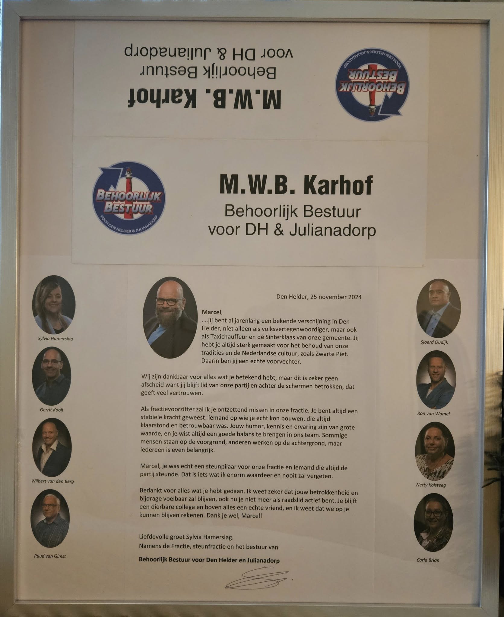 2024 november 26 video, woordvoering: Dankwoord en afscheid Marcel Karhof marcel