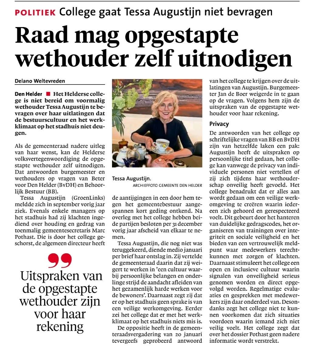 2025 februari 19 Wegduiken voor de waarheid College en ex-wethouder, College gaat Tessa Augustijn niet bevragen Raad mag opgestapte wethouder zelf uitnodigen FB_IMG_1739951751571